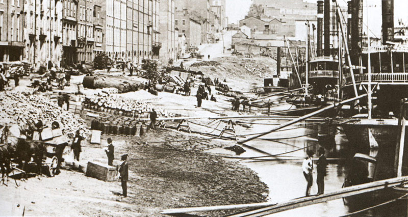 Photograph of the Nashville Wharf, taken by Calvert Brothers, shortly after the Civil War. From the Tennessee State Library and Archives.